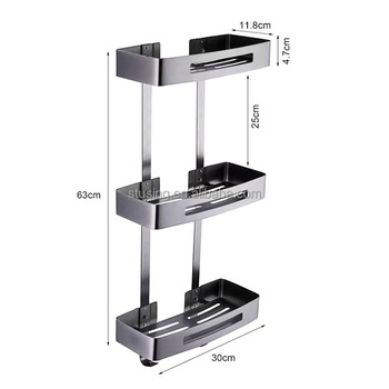 Étagère de rangement de salle de bain à trois niveaux en acier inoxydable antirouille avec finition chromée Crochets de douche Stockage d'outils à épices
